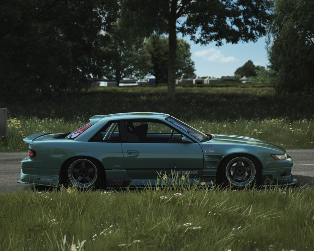 PHOTOMATCHED Origin Labo Racingline Bodykit for the GT7 Ps13 base model.